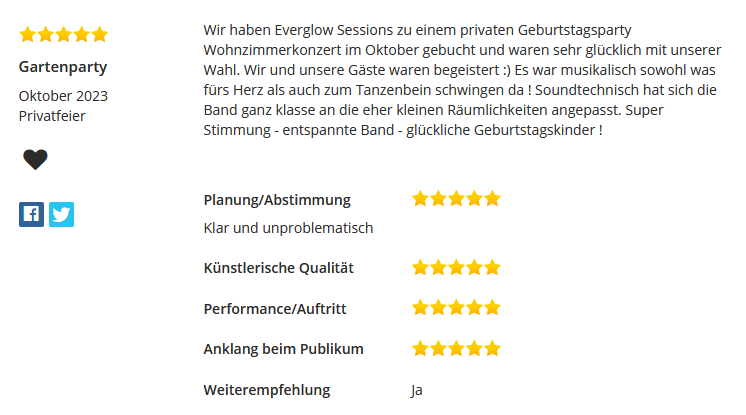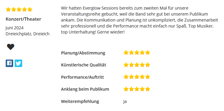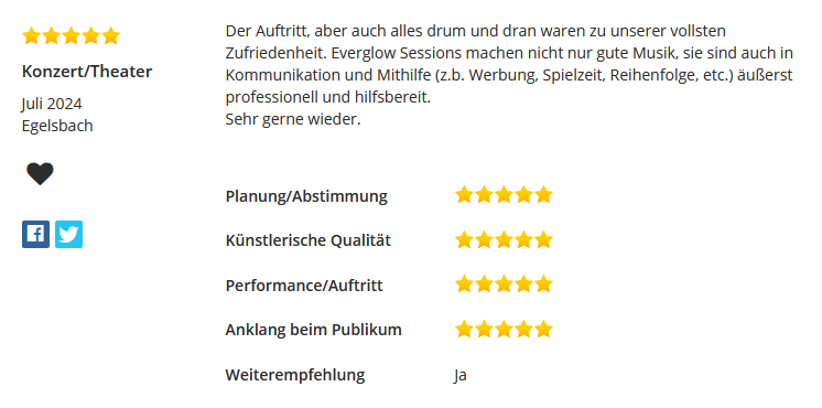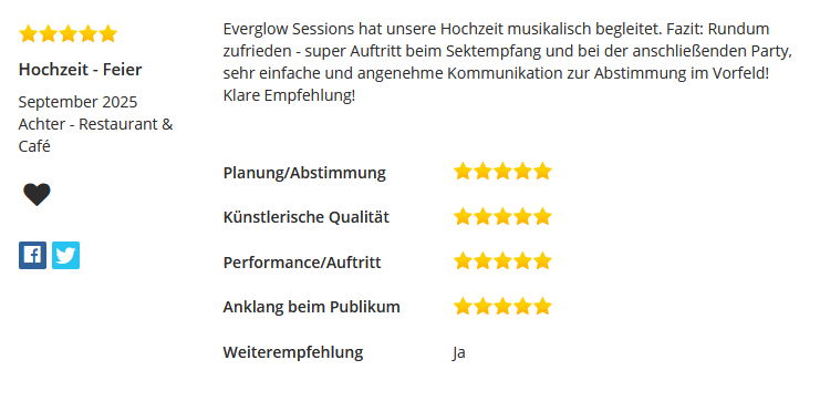 Wir sind Everglow Sessions und wir würden uns freuen, bald auch Ihre Veranstaltung musikalisch begleiten zu dürfen.